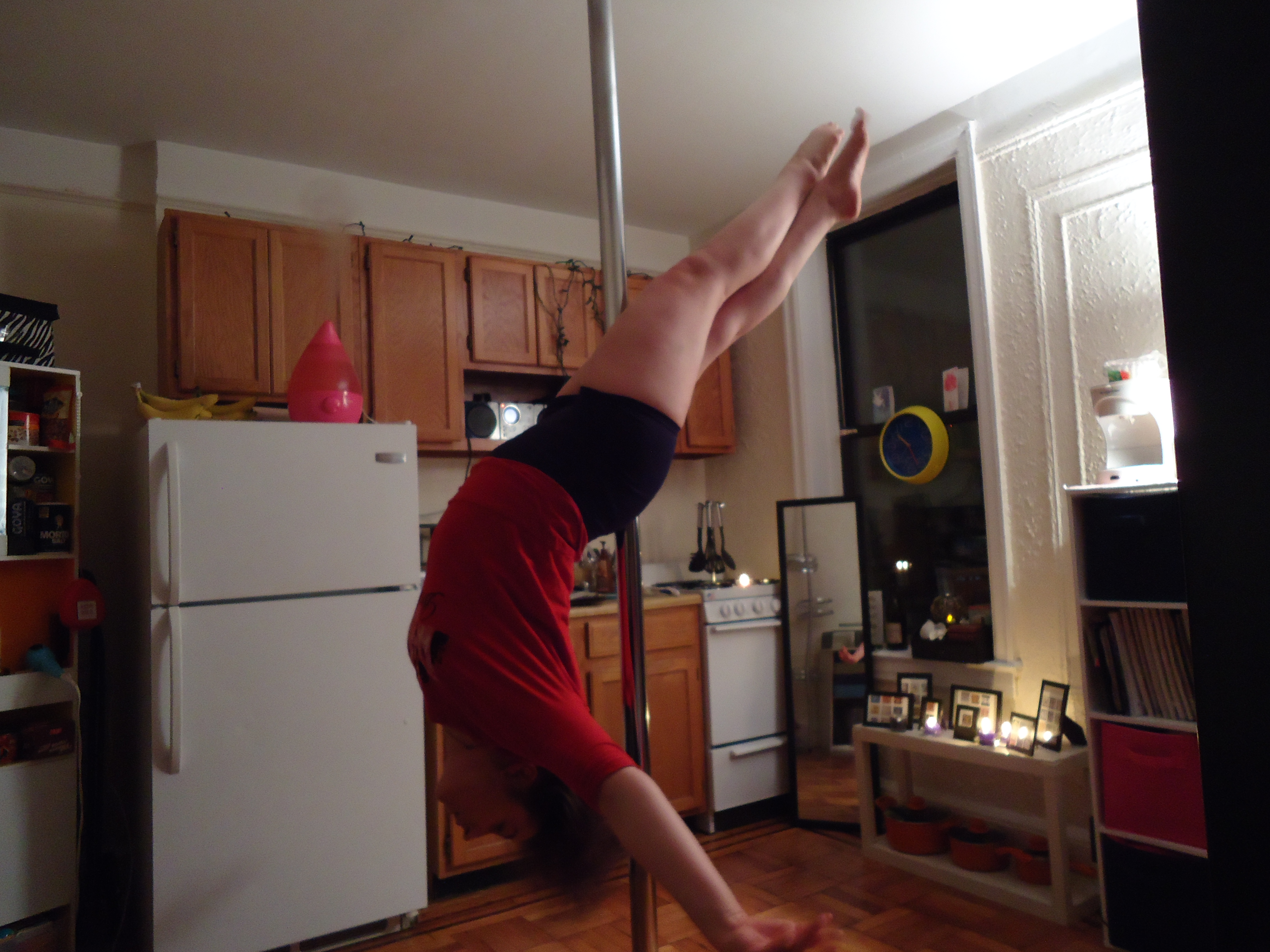 For somebody who’s literally never been on a pole before, I felt like it would be mean to let her think getting to that level is anything but extremely difficult and physically painful. (Think back to your first pole sits–remember how much that hurt? And how annoying it was that it didn’t even look impressive?)