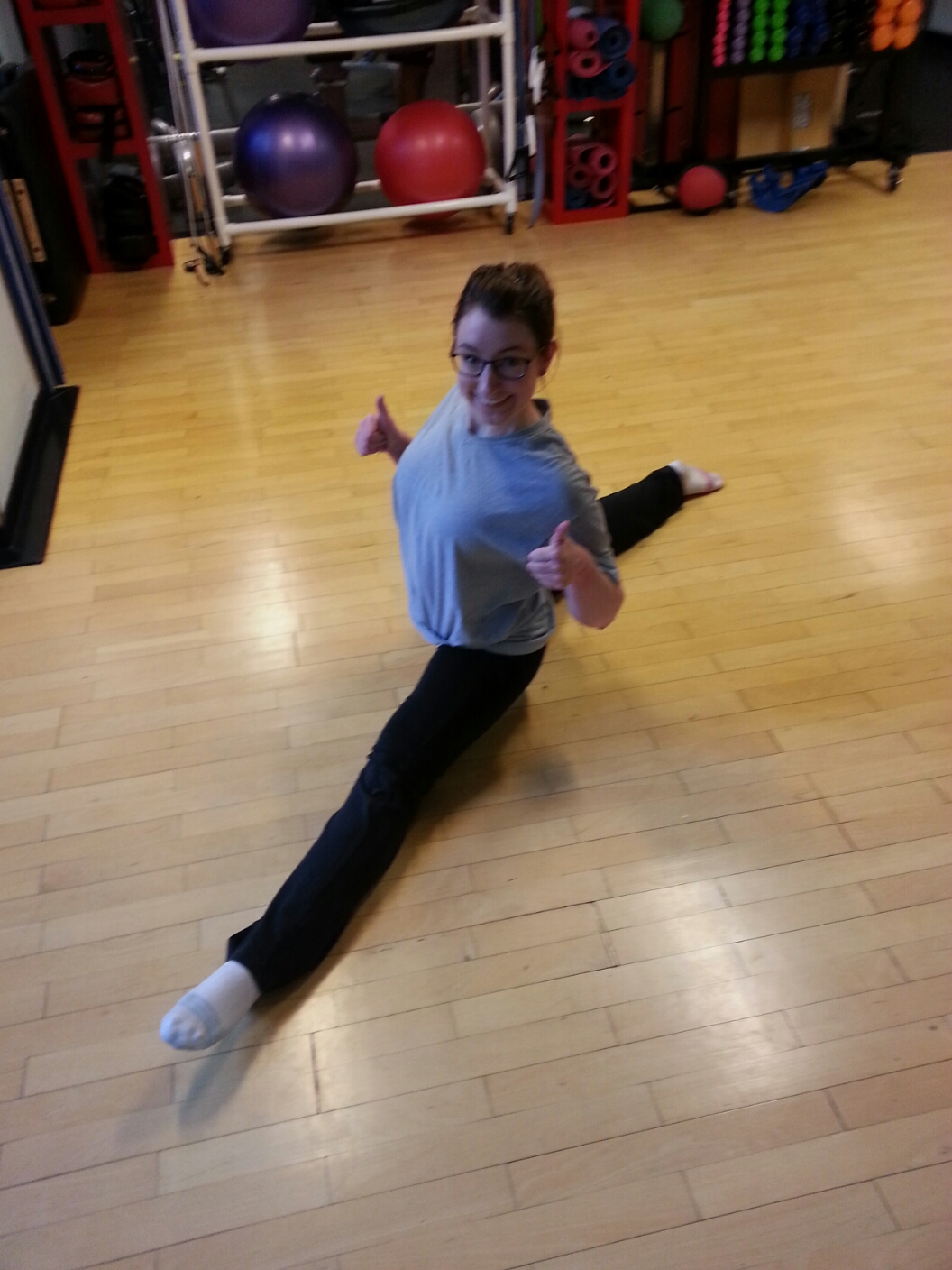 So this happened: Posted on March 12, 2013February 19, 2014 by Cathy Vandewater LEFT SIDE SPLIT. BOOYAH. Sorry about the weird angle and general nastiness (work at the gym, Krys took the pic on his phone). But damn. It feels good to be a gangster 😀 Share this: Share on X (Opens in new window) X Share on Facebook (Opens in new window) Facebook Like Loading... Related
