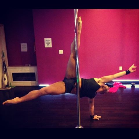 Until then, just imagine it as an uglier version of this (because I’m still learning, duh!), and with a hand supporting the grip leg, just as with Jade splits (which I CAN FEEL are coming, woot woot). Also, shout out to Cathe over at Our Pole Tricks for doing a no-handed chopper like a boss, just saying.